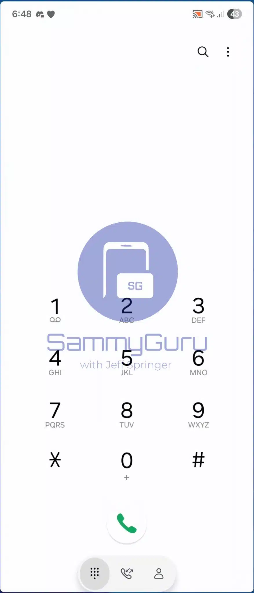 五、拨号界面原本的切换按钮将被药丸形浮动元素取代,方便用户切换拨号盘、通话记录与联系人。