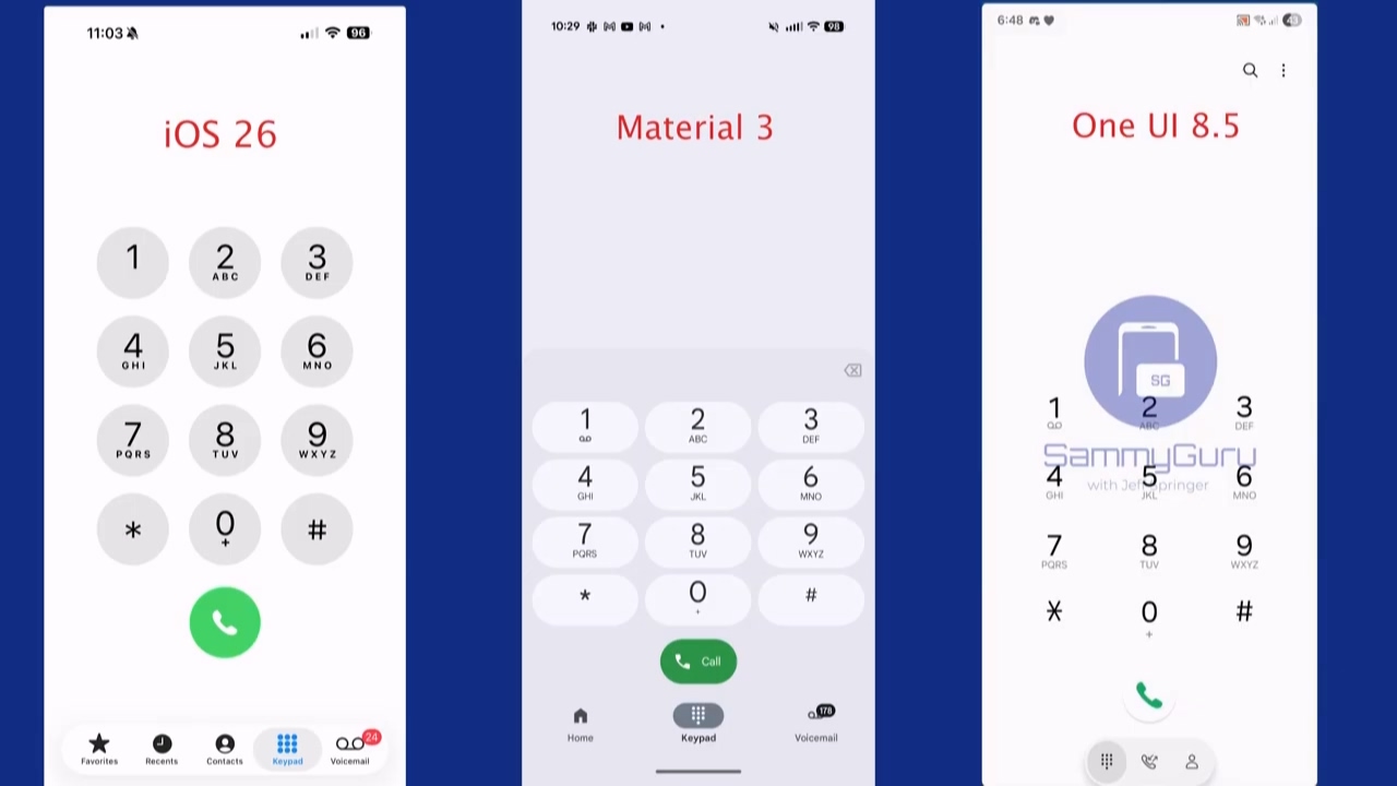 通话屏幕也会调整布局,不再采用单一半透明叠加层,而是为各功能提供独立的圆角方形按钮,这些按钮风格也会延伸到通话中的拨号盘界面。